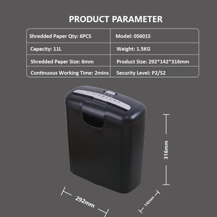 KuoRui OS601S P2 6 Sheet Strip Cut Function 60db Paper Shredder Machine