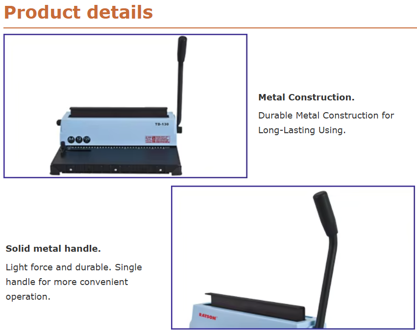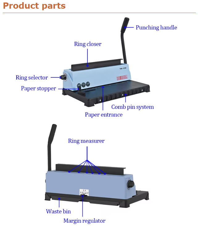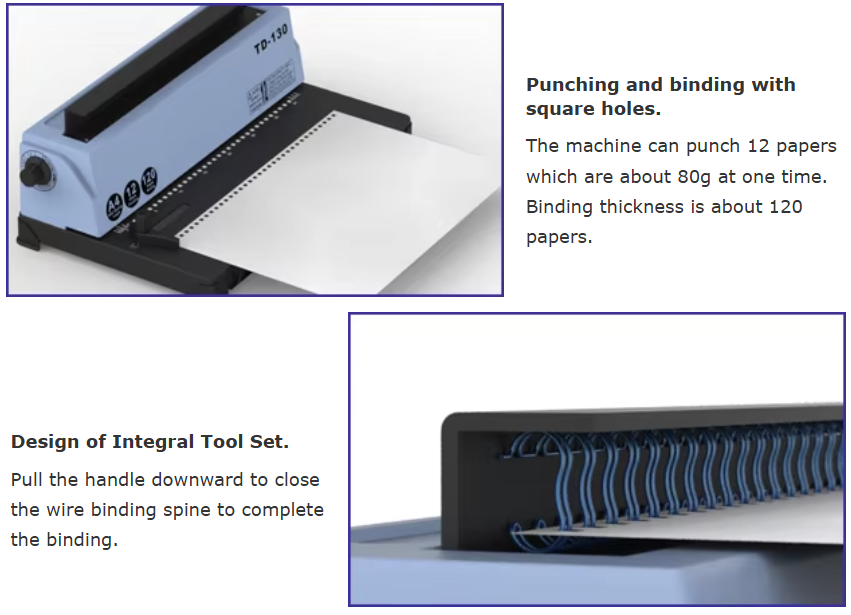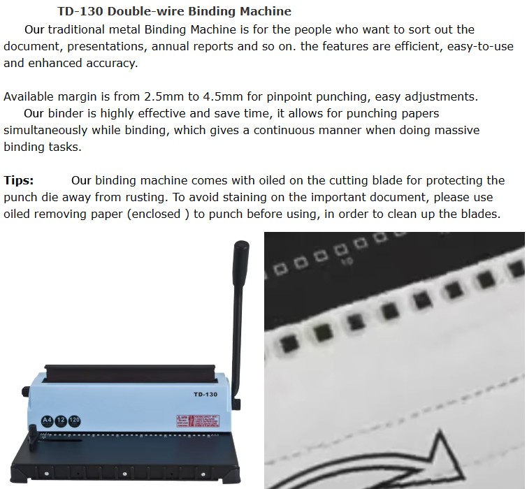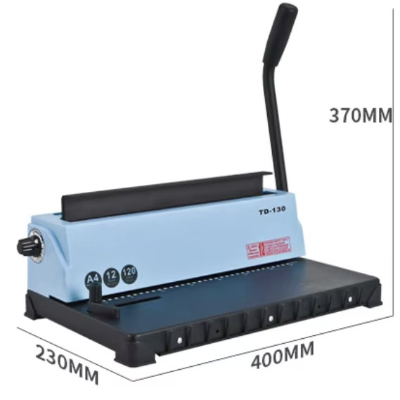 TD-130 Customizable Manual Double-Wire Binding Machine Sturdy Metal Construction Punch 12 Sheets/Bind 120 Sheets Binder