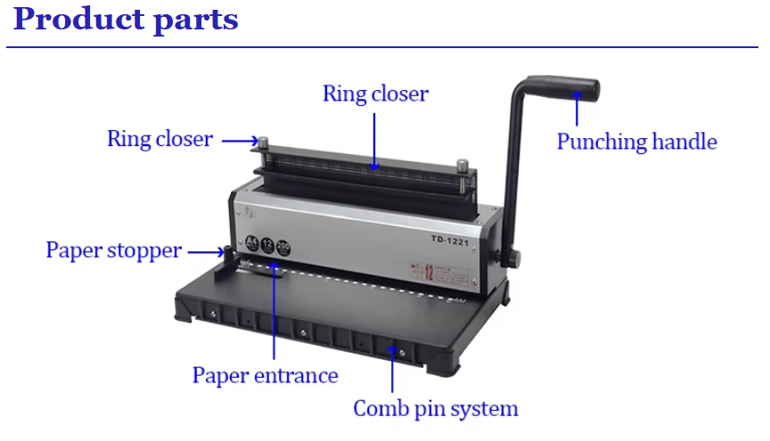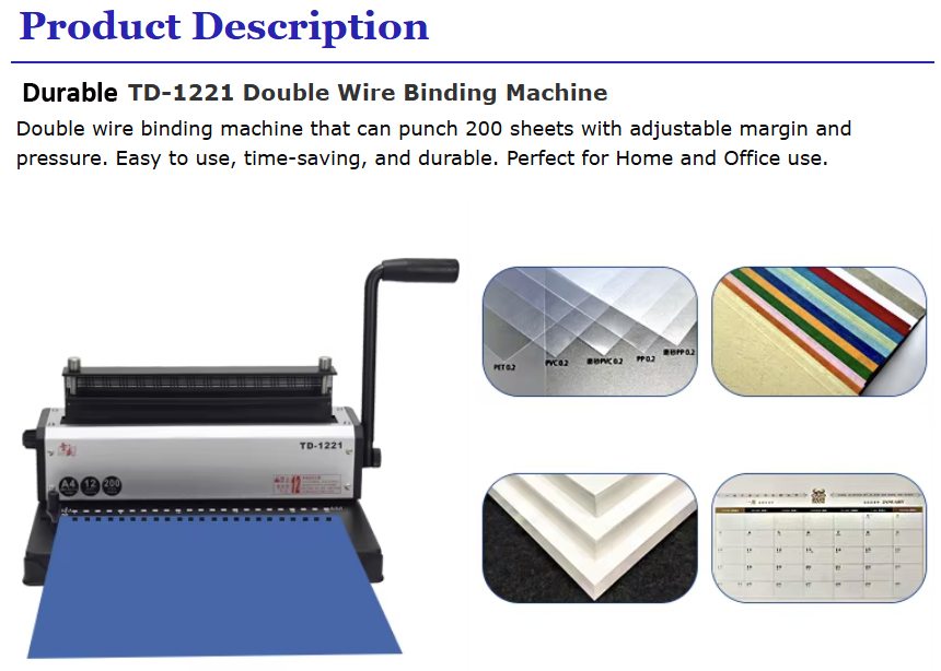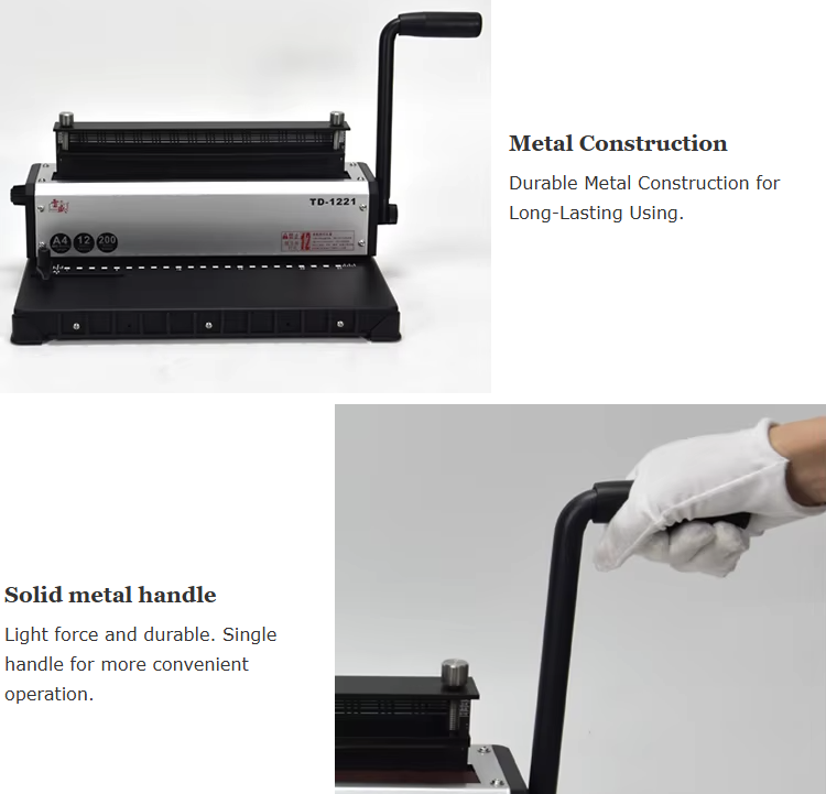 TD-1221 Manual Power Wire Binder 2-in-1 Hole Puncher and 3-in-1 Coil Double Wire Binding Machine