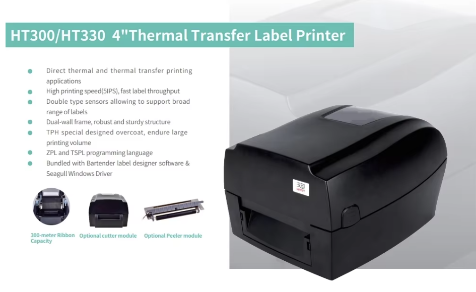 HT300 203dpi Portable Wifi Bluetooth Thermal Transfer Shipping Milk Tea Shop Label Barcode Printer