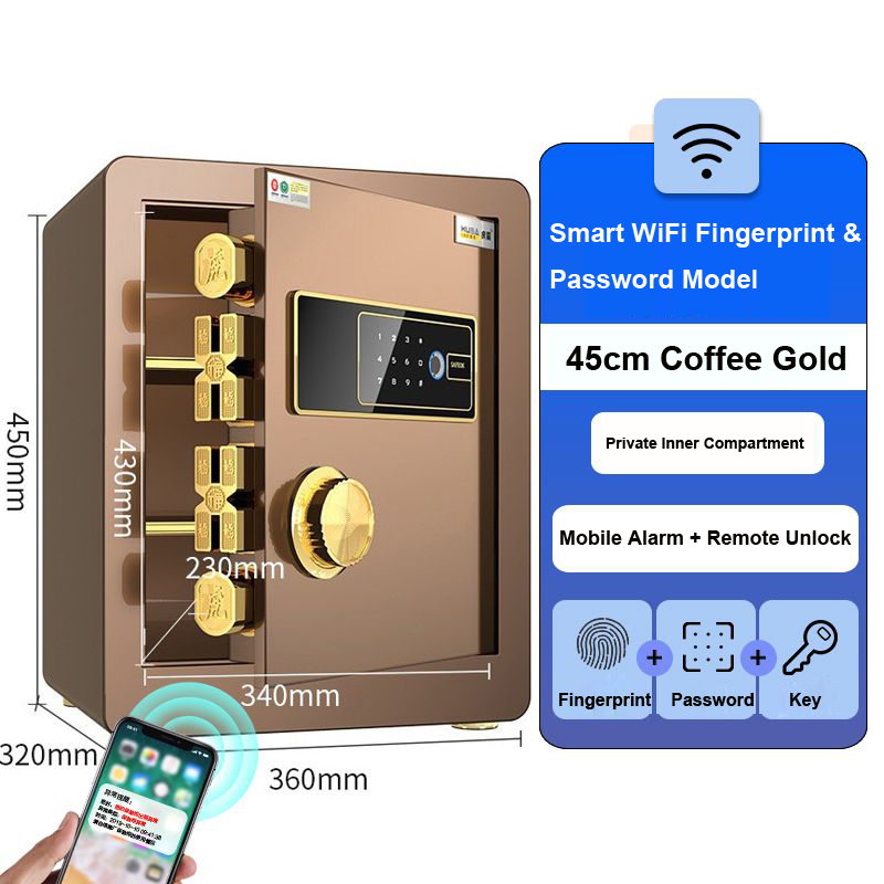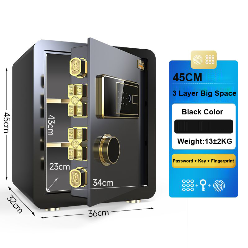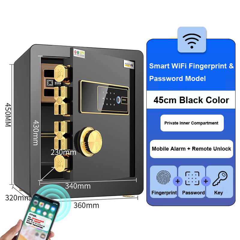 H45 Metal Safety Smart Deposit Safe Box with Fingerprint Password Electronic Digital Lock for Home & Office Use